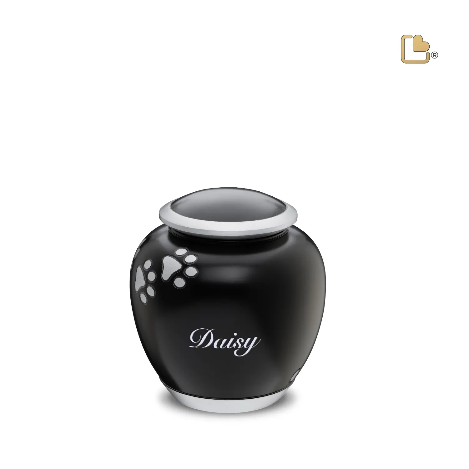 - Artikelnr: P551S Mini Urn Hond Zwart Zilver Met Pootafdruk (0.6 liter)