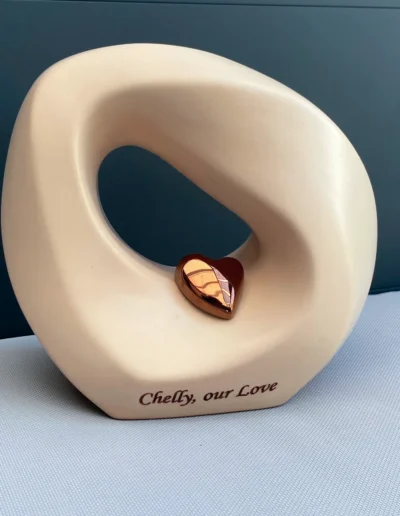 Een keramische urn kan een bijzondere en persoonlijke herdenkingsplaats zijn voor uw geliefde. Een manier om de urn nog persoonlijker te maken, is door deze te laten graveren. U kunt bijvoorbeeld de naam, een datum of een vlinder of een hartje of een ander symbool laten graveren door een ervaren vakman. De gravure wordt uitgevoerd met een echte lasergravure, waardoor het resultaat duurzaam en van hoge kwaliteit is.